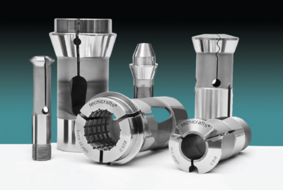 COLLETS: The collets are offered in Steel and Carbide lined versions with Grooved, Smooth, Serrated Bores in Standard and Long Nose Types. Tecnicrafts produces special collets such as V-Line, U-Line, Over-grip Collets, for positive gripping of delicate parts without marks.  The Ultra Precision (XP) W-Type collets are available for tool grinding applications on machines like Rollomatic, Anca, Ewag and others. Other collets offered includes 5C and 16C types.